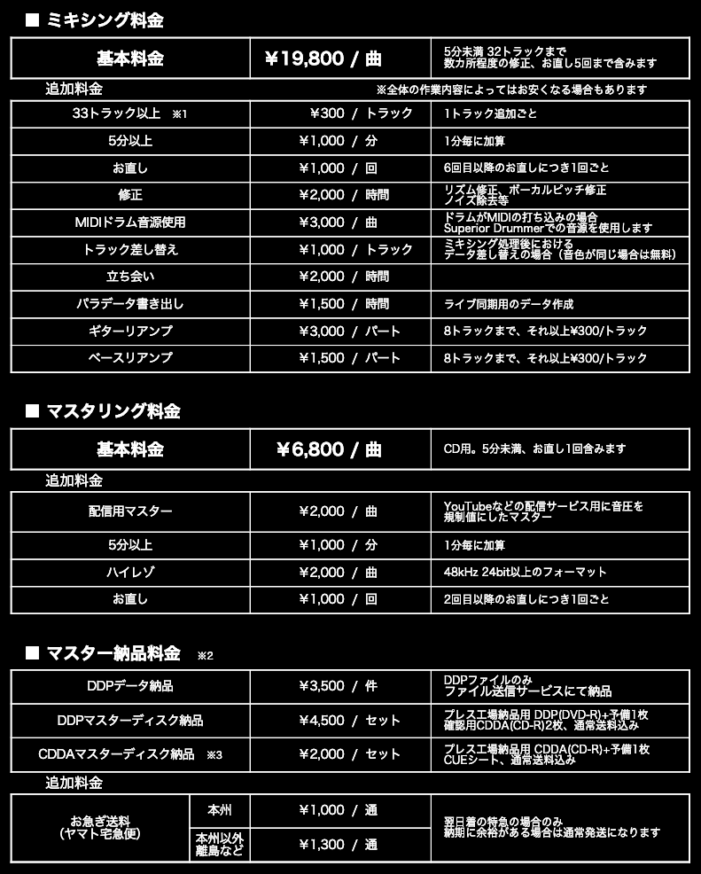 ※2 プレスを行わないWAV、AIFFでのファイルのみの納品の場合は料金はかかりません。
